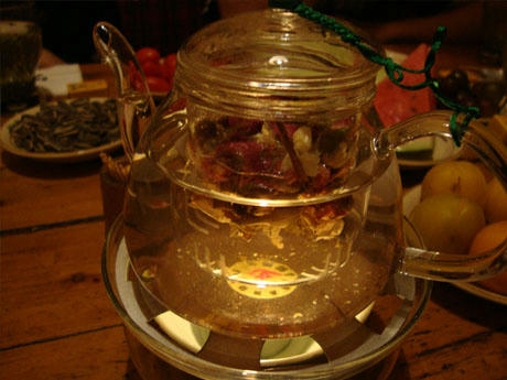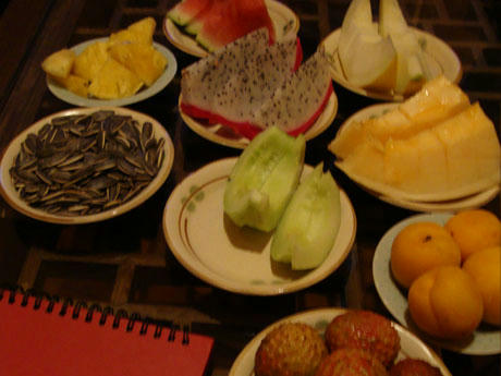 お茶請けは果物、ドライフルーツ、ナッツ(殻付きで剥くのが大変)、ひまわりの種等が主流みたい。