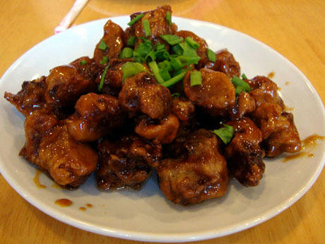鶏肉をカリカリに揚げて、甘酢の餡にからめたものです。