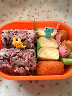 で今日のお弁当は、「友達に新発売のピックをもらったよ!」弁当(^O^)