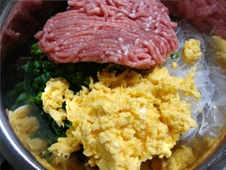 中国帰り(笑)の私が作るのは、炒り卵入り餃子。